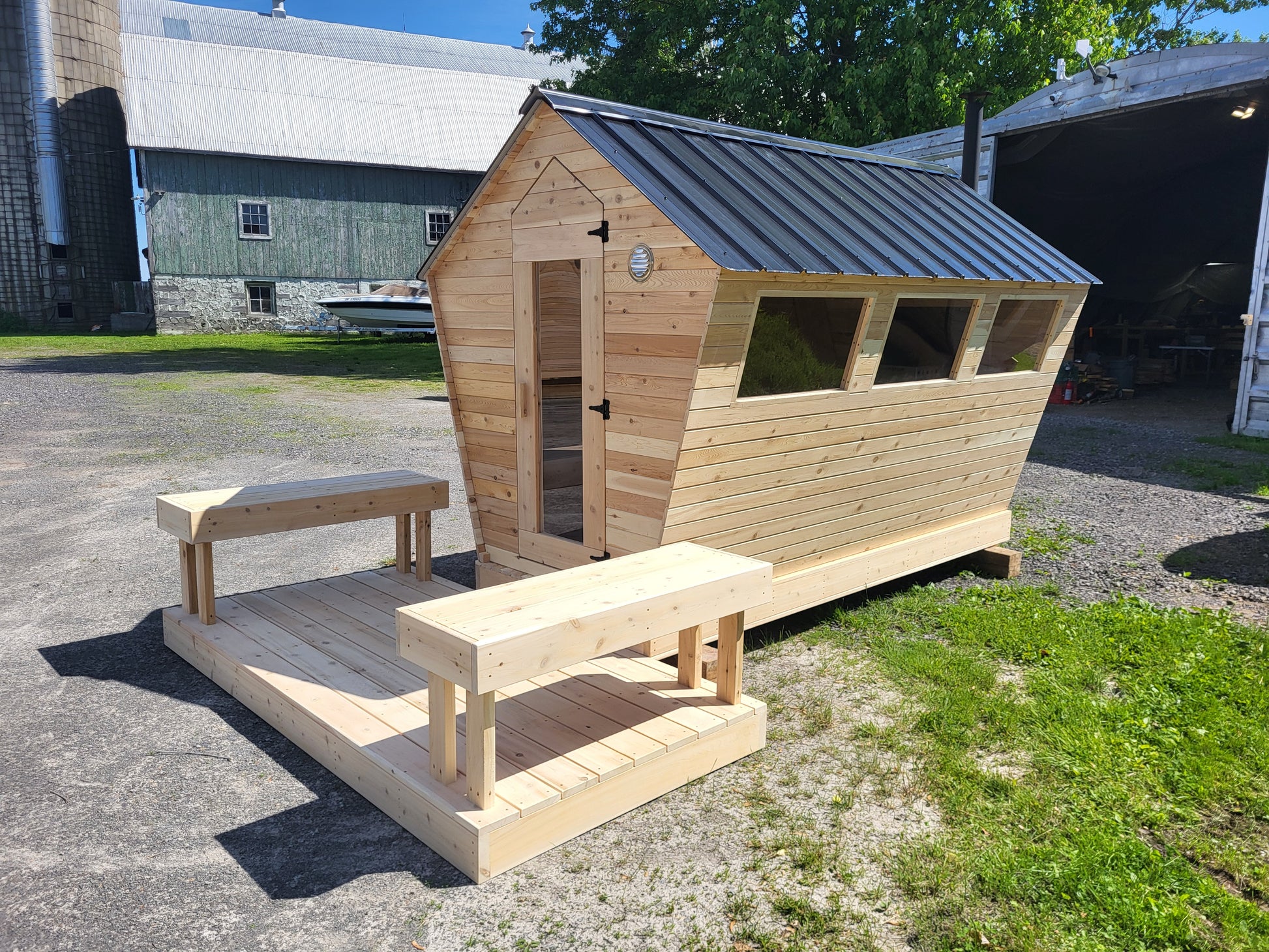 We offer complete personalization with every sauna to perfectly suit your needs and vision of your backyard spa retreat (bench height, door hinge, windows, stain, tin color, etc...)